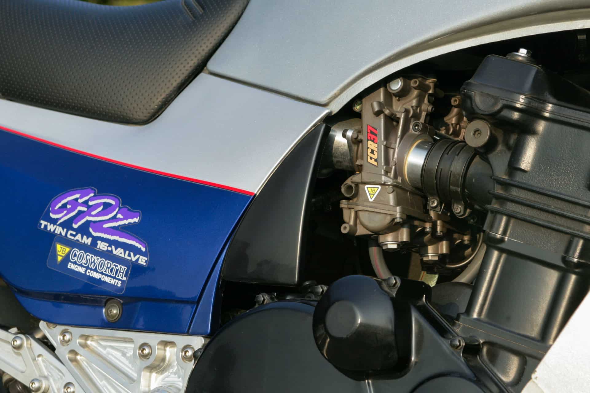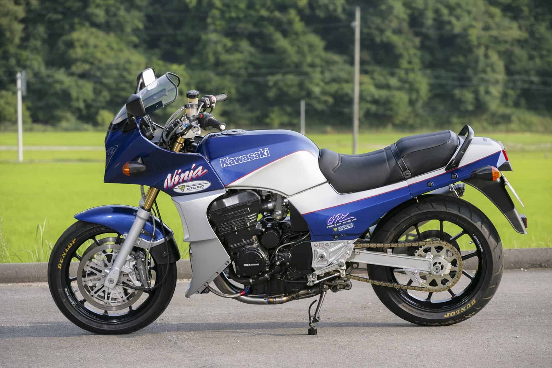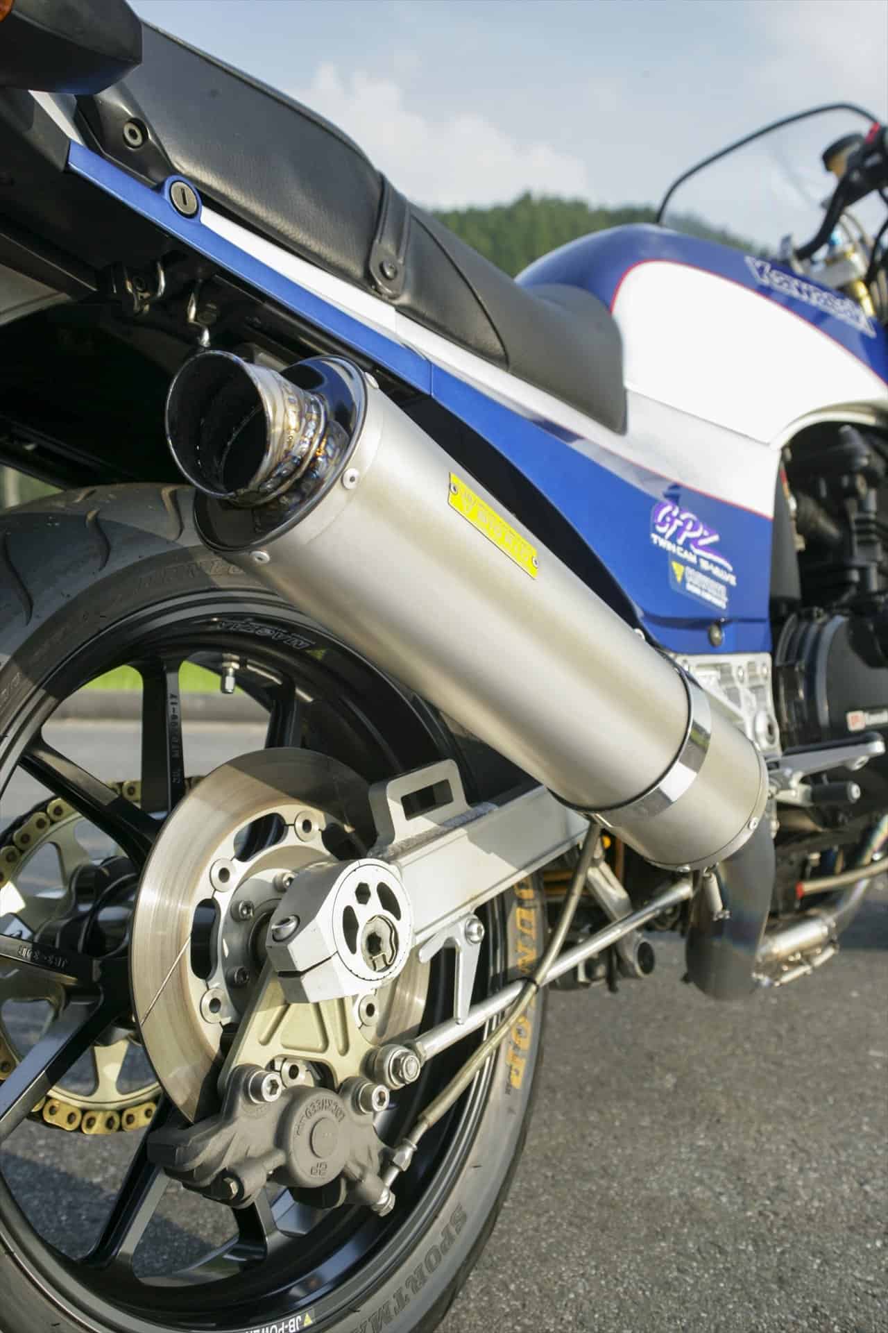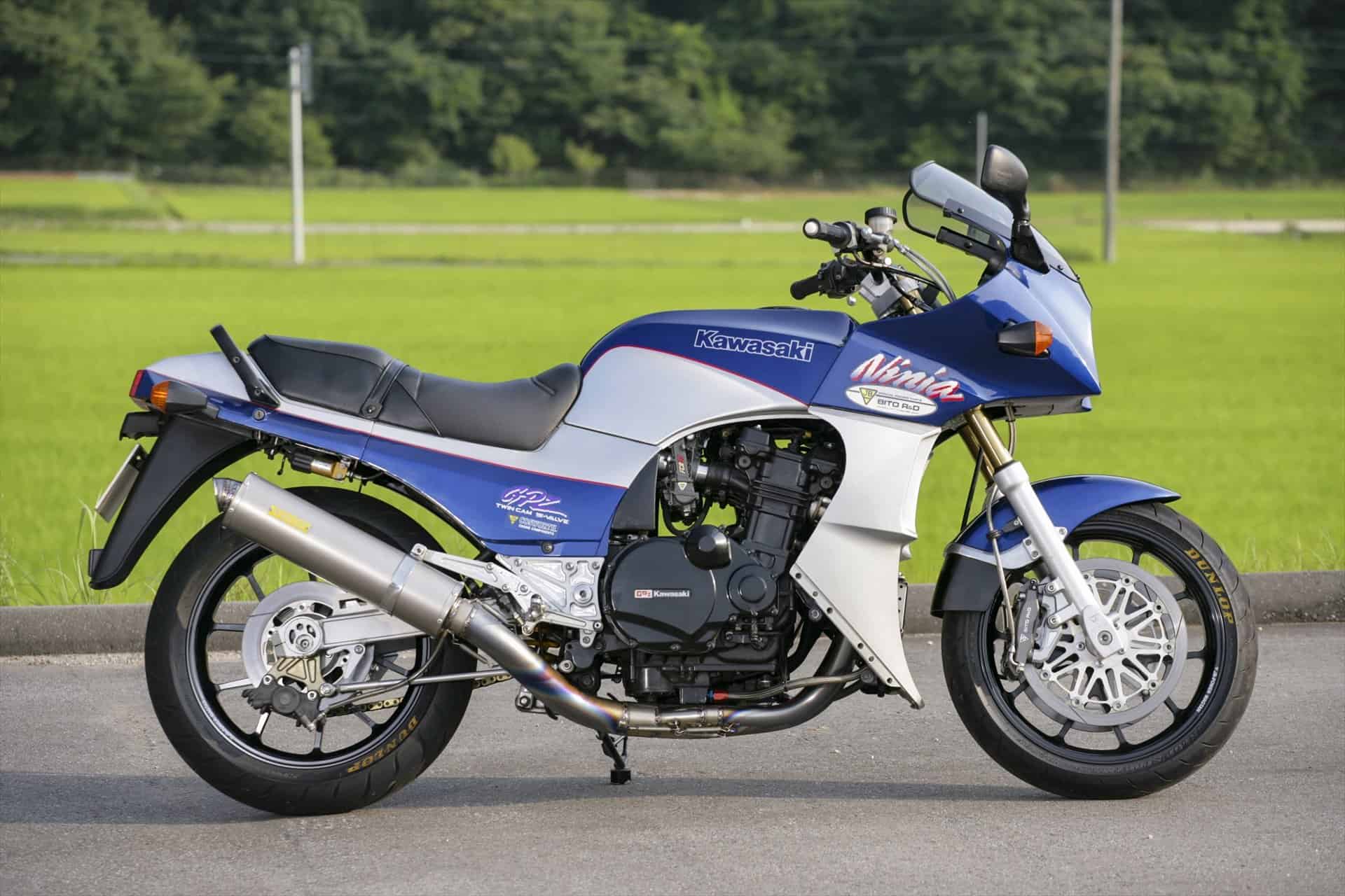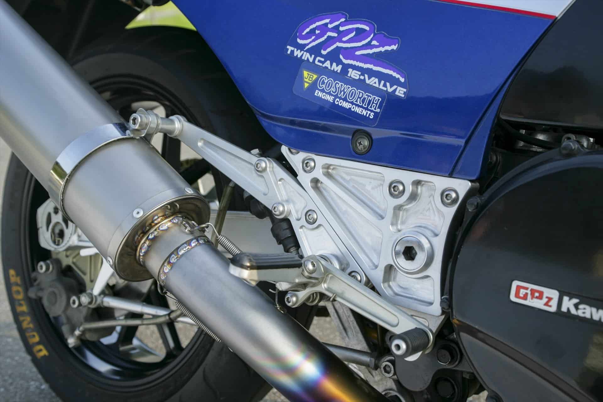 The GPZ900R NINJA was released in 1984 aiming for the pinnacle of the super-sports class, carrying on the Kawasaki proud heritage as “The Next Z”. Equipped with Kawasaki’s outstanding, first-generation liquid-cooled, side-cam chain four-cylinder engine, the machine has left a technological footprint that continues till the present. The GPZ900R’s continued admiration by many fans and appearances in Hollywood movies made it famous all over the world – A motorcycle that truly changed the course of Kawasaki’s history. The avant-garde combination of 16-inch front and 18-inch rear wheels is said to give the NINJA its special character. However, in changing to 18-inch forged magnesium wheels, BITO R&D managed to achieve a neutral, easy to control handling. A bore-up piston kit and special porting gave a significant boost to the already impressive engine performance and retiring the separate handle in favor of a handlebar, a new rear set as well as a revised seat shape, all of which create an optimized riding position. The engine revs obediently to the rider’s command and the acceleration potential seems to be limitless. However, the neutral handling created by 18-inch wheels, and the relaxed riding position provide not only the joy of cornering but also comfort on extended trips and the exquisite pleasure of riding in a leisurely dialog with your bike. With the JB-POWER NINJA, a motorcycle that teaches the true pleasure of riding was born!